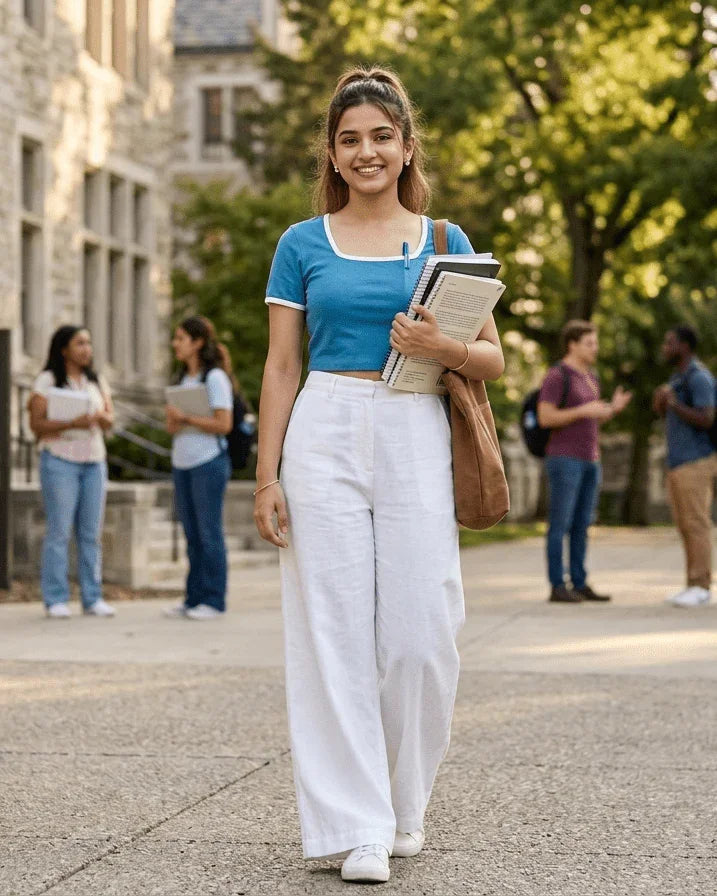 This crop top pairs effortlessly with high-waist jeans, cargos, or skirts, making it a go-to option for college, casual outings, or laid-back days.