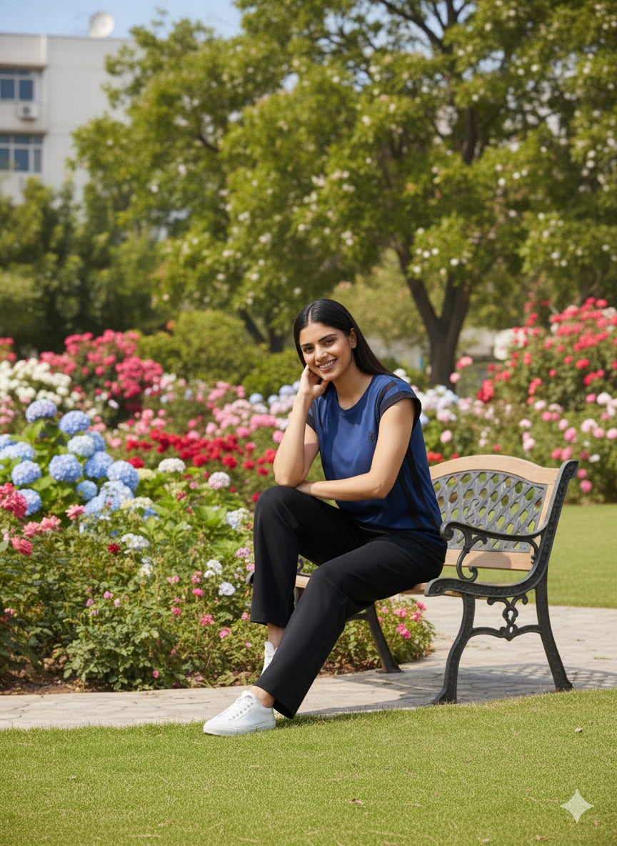Side slit Co-Ord set with hand stitched edge strip and comfortable pajamas.